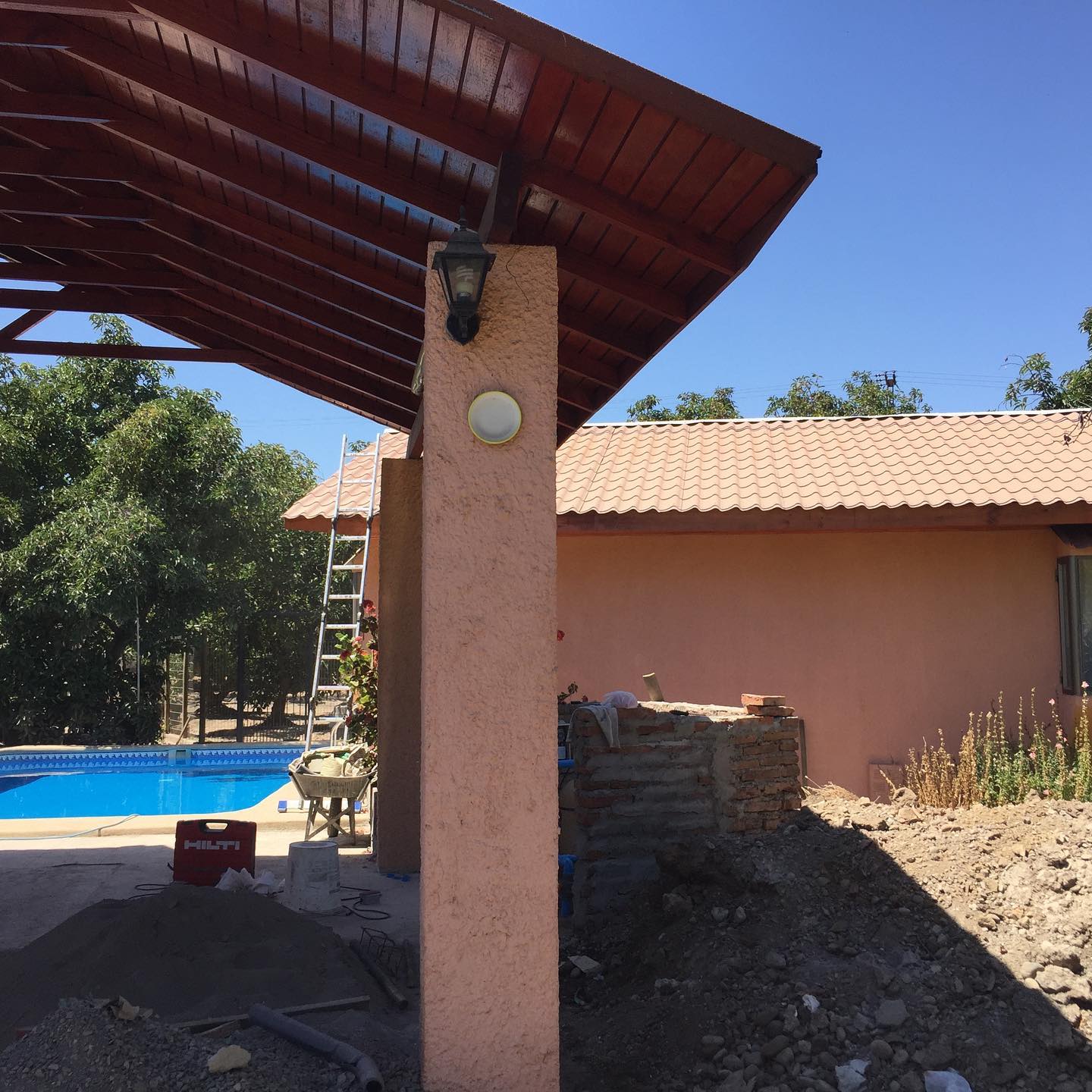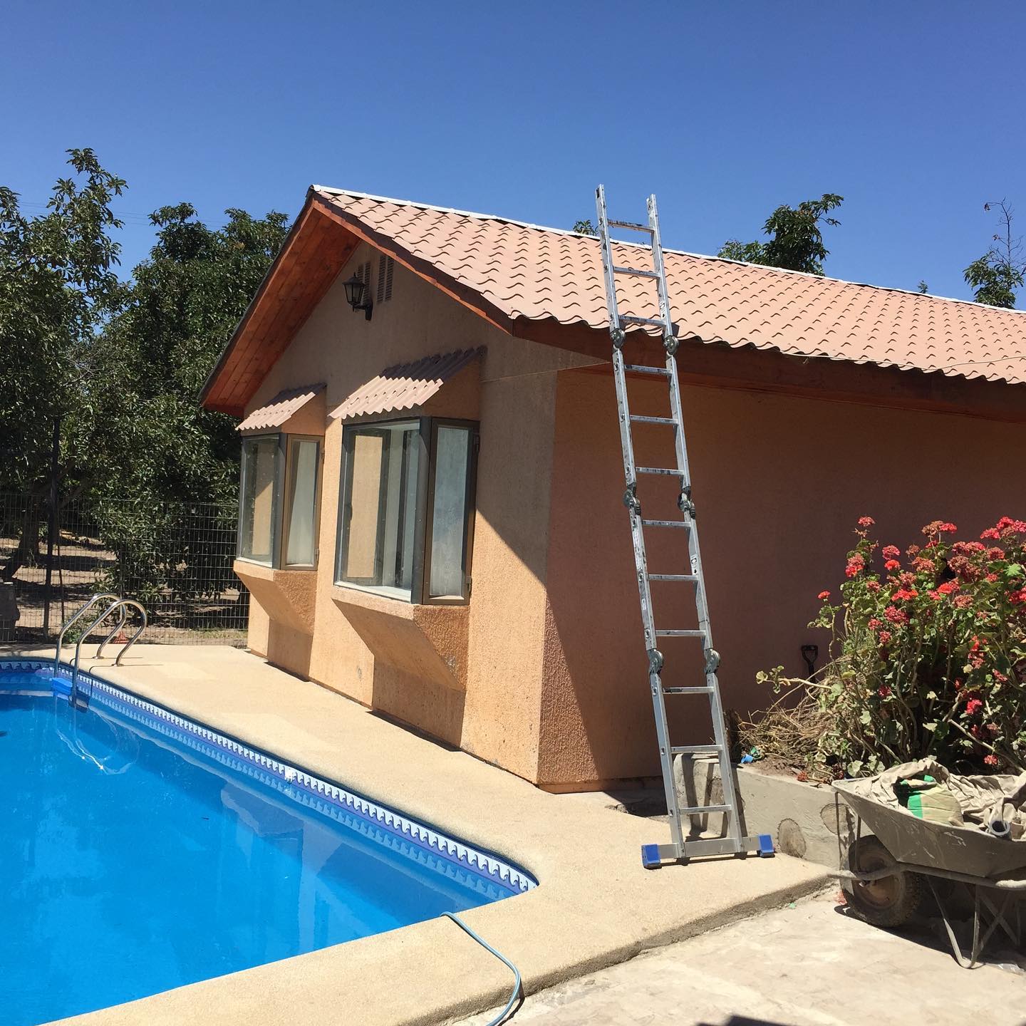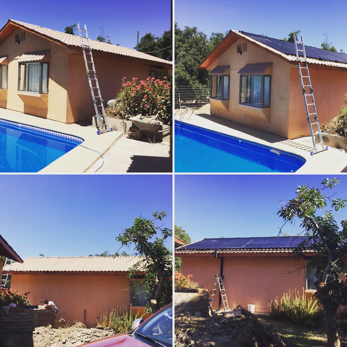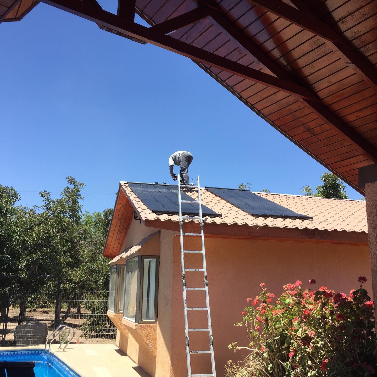 Piscina en San Felipe, Región de Valparaíso que se suma a la tecnología solar. El agua está en 19°C y ahora que retorna del panel viene a 25°C Que mejor uso del Sol??